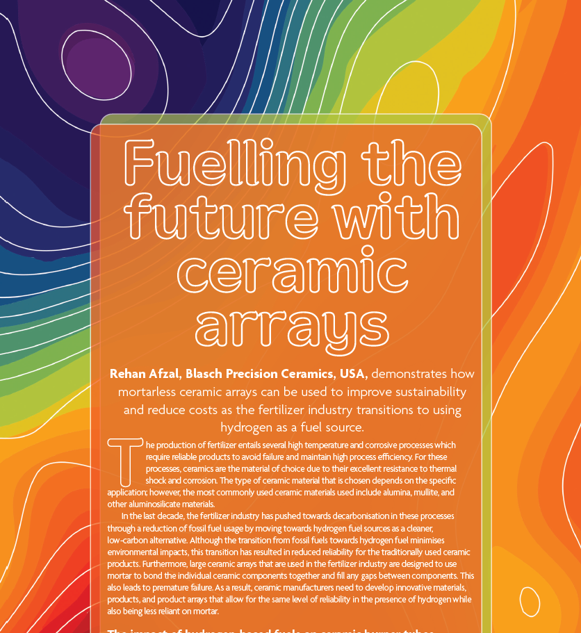 This white paper explores how advanced ceramic materials and mortarless ferrule arrays can improve reliability and sustainability in fertilizer production as the industry transitions to hydrogen fuel. By developing a porous 99% alumina ceramic with enhanced thermal shock resistance and designing innovative mortarless ferrule systems for waste heat boilers, these solutions help mitigate hydrogen-related degradation, reduce maintenance, and lower operational costs while supporting decarbonization efforts.